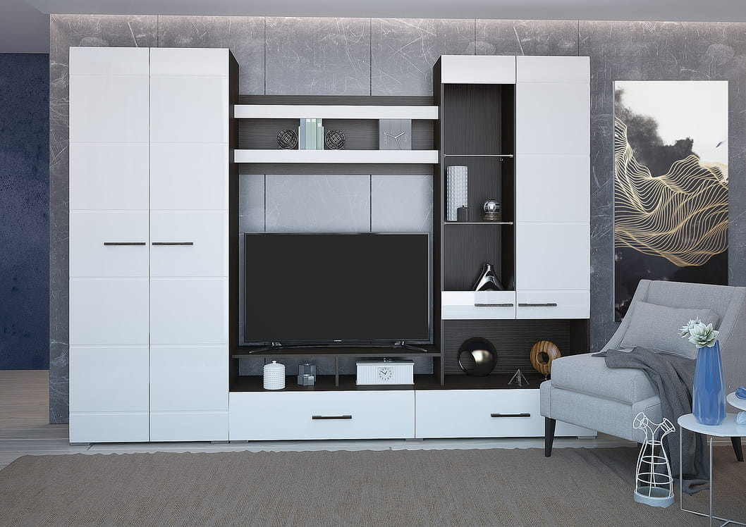Гостиная Ницца поможет правильно организовать ваше жилое пространство, вдохнуть новую жизнь в интерьер. К данной гостиной вы можете приобрести спальный гарнитур Ницца. Модульная система Ницца поможет правильно организовать ваше жилое пространство, вдохнуть новую жизнь в интерьер. Элементы, из которых состоит модульная система, могут комбинироваться друг с другом в разнообразных сочетаниях, при этом выглядя эффектно не только вместе, но и отдельно. Собирается в зеркальном исполнении.